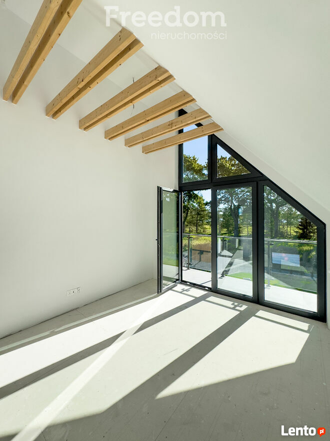 Wnętrze wypełnia światło i przestrzeń. Duże przeszklenia